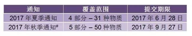 #僅在2017年秋季通知中規(guī)定了用作銷售食品和飲料的食品包裝以及在使用時(shí)釋放物質(zhì)的物品只列入于2017年秋季通知的規(guī)定要求。