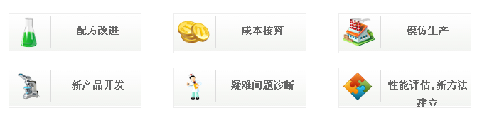 1、精細化工:清洗劑配方、金屬表面處理劑配方、金屬加工液配方、紡織印染助劑配方、水處理配方、造紙化學品配方、建筑助劑配方、皮革化學品配方、電子化學品配方、其他助劑配方