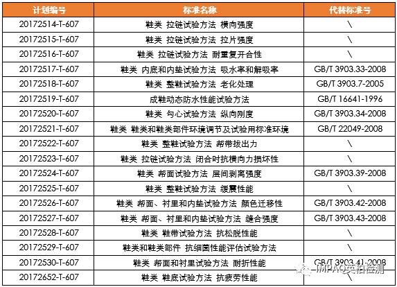 國家標(biāo)準(zhǔn)委還下達(dá)了《招標(biāo)采購代理服務(wù)規(guī)范》等408項(xiàng)國家標(biāo)準(zhǔn)制修訂計劃的通知。其中由全國制鞋標(biāo)準(zhǔn)化技術(shù)委員會(SAC/TC 305)歸口、中國皮革和制鞋工業(yè)研究院等單位負(fù)責(zé)起草的18項(xiàng)鞋類國家標(biāo)準(zhǔn)計劃項(xiàng)目獲得批準(zhǔn)立項(xiàng)。