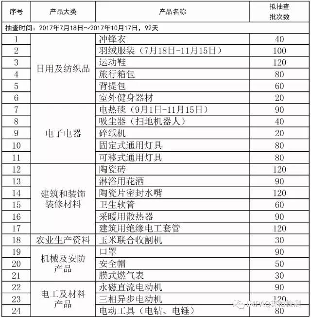 近日,國家質(zhì)檢總局官網(wǎng)發(fā)布關(guān)于組織2017年第4批產(chǎn)品質(zhì)量國家監(jiān)督抽查承檢機構(gòu)申報工作的通知。據(jù)通知介紹,24種產(chǎn)品列入質(zhì)檢總局今年第4批產(chǎn)品質(zhì)量國家監(jiān)督季度抽查產(chǎn)品計劃,包括日用及紡織品、電子電器、建筑和裝飾裝修材料、農(nóng)業(yè)生產(chǎn)資料、機械及安防產(chǎn)品、電工及材料產(chǎn)品六大類。