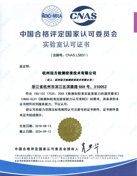 近日,中國合格評定國家認可委員會(CNAS)正式向杭州遠方檢測校準技術有限公司(簡稱遠方檢測)頒發(fā)了最新的實驗室認可資質證書,標志著遠方檢測CNAS實驗室擴項的正式完成。