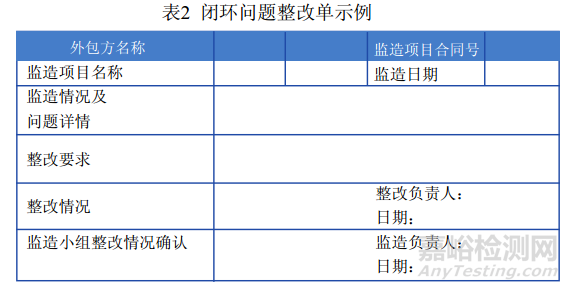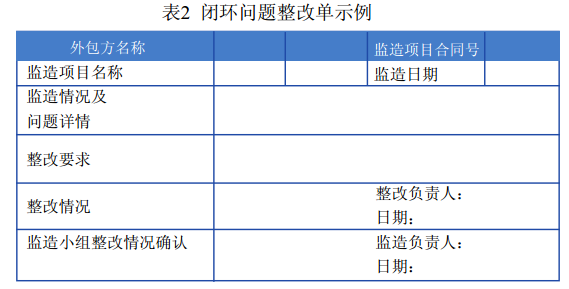 現(xiàn)場監(jiān)造結束后形成監(jiān)造報告,對監(jiān)造過程中發(fā)現(xiàn)的問題逐項列出,可采用表2“閉環(huán)問題整改單”的形式,并逐項跟蹤外包方改善情況。