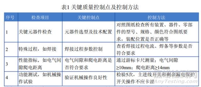 產(chǎn)品生產(chǎn)外包前,一般由相關技術人員依據(jù)國家標準、合同要求等,編制產(chǎn)品的質(zhì)量關鍵控制點及控制方法??砂攸c零部件、性能指標、出廠試驗、包裝運輸?shù)确矫鎯?nèi)容。產(chǎn)品的質(zhì)量關鍵控制點編制完成后,還需要經(jīng)過技術、生產(chǎn)、檢驗、質(zhì)量管理等人員組成的評審組進行評審。評審通過后的質(zhì)量關鍵控制點作為對外包產(chǎn)品生產(chǎn)過程質(zhì)量控制的依據(jù)。關鍵質(zhì)量控制點及控制方法可采用表1形式。