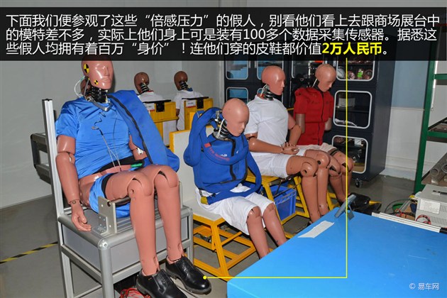 參觀完車(chē)子的“刑場(chǎng)”之后,我們一行人來(lái)到了“人”的受刑室。當(dāng)然這里的人指的是專(zhuān)門(mén)用來(lái)做安全碰撞實(shí)驗(yàn)的假人。其實(shí)如果按照先后順序的話,針對(duì)假人的安全碰撞要放在車(chē)子的前面。這點(diǎn)從優(yōu)先級(jí)上考慮也不難理解,畢竟車(chē)子安全性的好壞亦是在為車(chē)內(nèi)乘員生命安全服務(wù)的。而模擬碰撞實(shí)驗(yàn)就是開(kāi)發(fā)乘員保護(hù)系統(tǒng)最有效的試驗(yàn)手段。