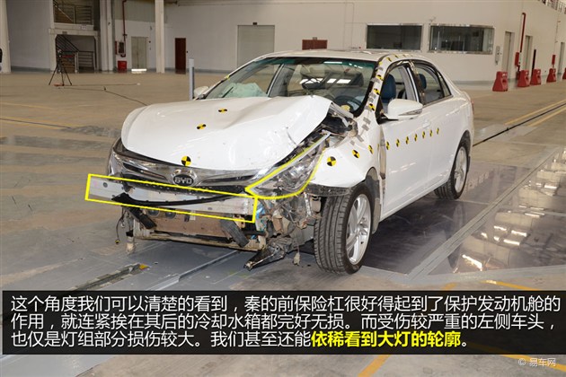 雖然我們并沒(méi)有親眼看到兩車(chē)對(duì)碰的實(shí)景,但展臺(tái)中央的那輛碰撞后的比亞迪秦倒是個(gè)意外收獲。在這即將上市之際(11月13日),廠商這樣的做法還真有點(diǎn)醉翁之意不在酒啊。