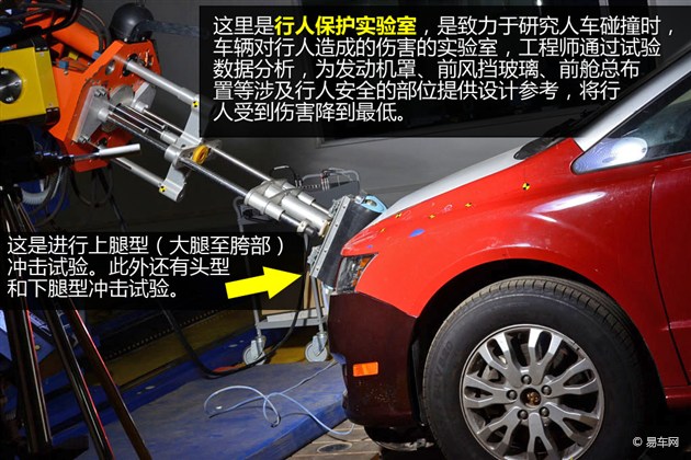 接下來(lái)我們參觀的是行人保護(hù)實(shí)驗(yàn)室,也是整個(gè)安全碰撞的最后一個(gè)實(shí)驗(yàn)室,它致力于研究人車(chē)碰撞時(shí),車(chē)輛對(duì)行人造成的傷害的實(shí)驗(yàn)室。技術(shù)人員通過(guò)試驗(yàn)數(shù)據(jù)分析,為發(fā)動(dòng)機(jī)罩、前風(fēng)擋玻璃、前艙總布置等涉及行人安全的部位提供設(shè)計(jì)參考,將行人受到傷害降到最低。同時(shí)該實(shí)驗(yàn)室還可完成汽車(chē)內(nèi)飾、頂棚、座椅和轉(zhuǎn)向管柱等相關(guān)沖擊試驗(yàn)。