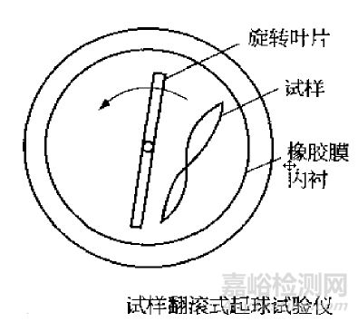 圖1為其原理圖是在以橡膠(軟木)作內(nèi)襯的圓筒內(nèi)。由旋轉(zhuǎn)葉片將3個(gè)試樣同時(shí)攪拌,賦予不規(guī)則的屈曲揉搓和摩擦作用。這種形式與實(shí)用有很高的關(guān)聯(lián)性。