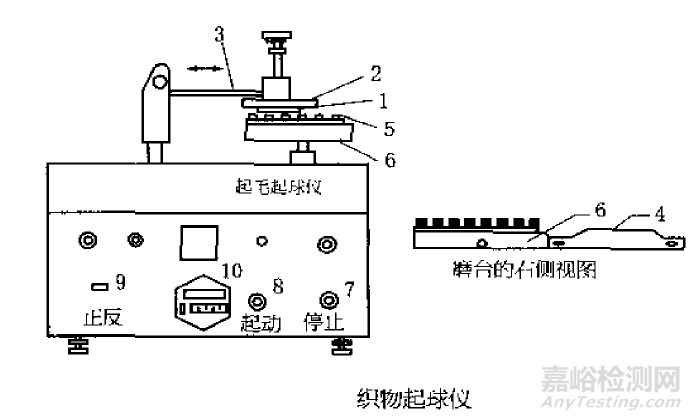 圖2為一種常用的織物起球儀。它將織物的起毛和起球分別講行.先用尼龍刷對(duì)織物試樣摩擦一定次數(shù),使織物表面產(chǎn)生毛茸,然后將試樣與磨料織物進(jìn)行摩擦起球。試樣與磨料相對(duì)運(yùn)動(dòng)的軌跡為圓形,試樣每分鐘磨60次,儀器裝有電磁記數(shù)器,達(dá)到預(yù)定摩擦次數(shù)時(shí),即自動(dòng)停止試驗(yàn)。該起球儀適用十化纖長(zhǎng)絲織物和化纖短纖織物。在只用織物作磨料時(shí),可用于毛織物和其他易起球織物。