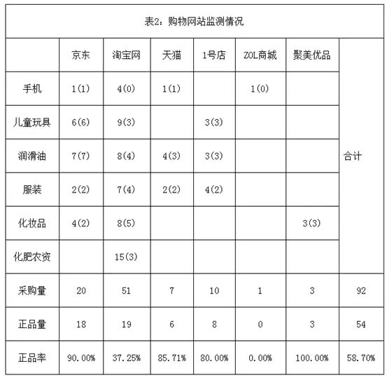 這個結(jié)果挺要命,不到6成的正品率,叫大家怎么安心“剁手”。不過細(xì)心的人也發(fā)現(xiàn)了一個問題,9家網(wǎng)購平臺上的商品多的數(shù)不清,總共抽取92件,平均每家抽取10件商品檢測,得到的結(jié)果能否代表真實情況?并且,“非正品”也不等于“假冒”或是“質(zhì)量不合格”。再一看這次抽檢的詳情表,更是下巴都掉了下來。