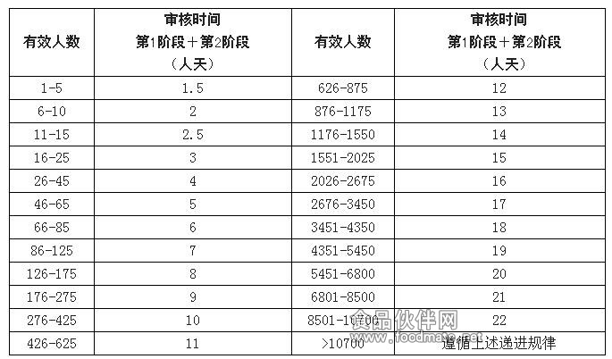 注:1.有效人數(shù)包括認證范圍內涉及的所有人員(含每個班次的人員)。覆蓋于認證