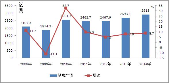 圖1 2008-2014年我國集成電路行業(yè)增長情況