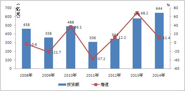 圖4 2008-2014年我國集成電路固定資產投資增長情況