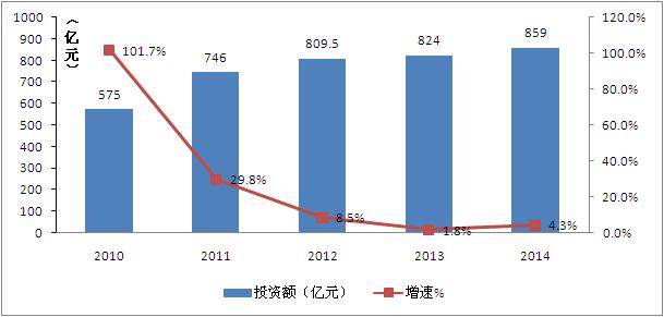圖4 2010-2014年我國計(jì)算機(jī)固定資產(chǎn)投資增長情況