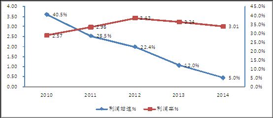 圖3 2010-2014年我國計(jì)算機(jī)利潤增長情況