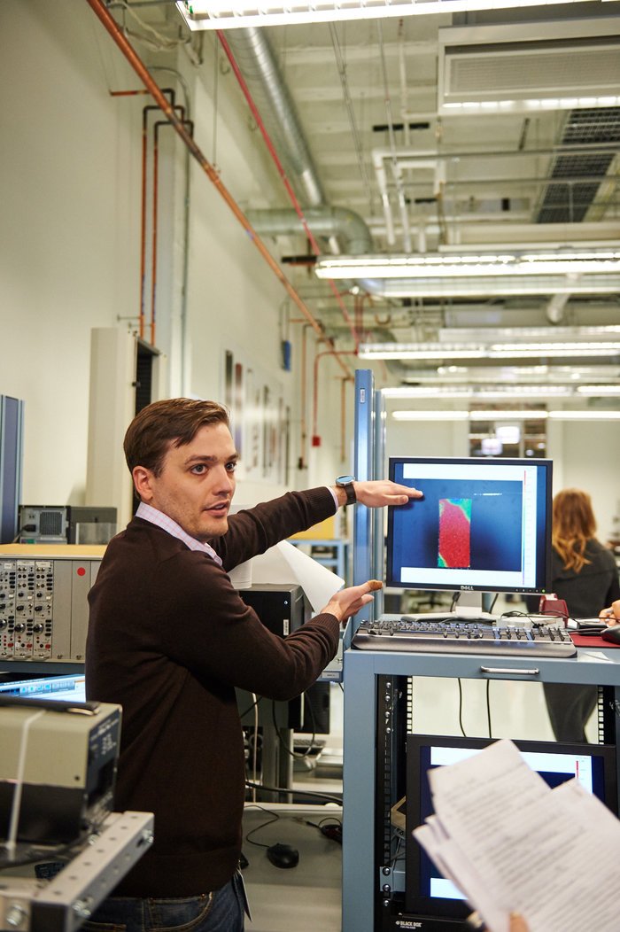 為了理解這些材料的特性和表現(xiàn),他們需要用實(shí)驗(yàn)來進(jìn)行研究和評價(jià)。他們會(huì)采用一個(gè)涂料的樣品,再加上兩個(gè)攝像機(jī),來監(jiān)控材料的特性,用這個(gè)獲取的信息來選擇最佳的材料。它對設(shè)計(jì)非常有幫助,可以在成品出來之前把它做到最好。