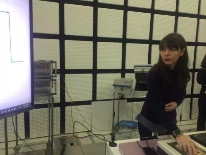 對了,揭曉答案。這個(gè)實(shí)驗(yàn)室原來是NBC電視臺(tái)的播音室,在摩托羅拉搬過來之后,就改做電磁兼容測試了。不過,當(dāng)師凱蒂在試驗(yàn)臺(tái)后一站,開始講解各個(gè)技術(shù)細(xì)節(jié)時(shí),我還是隱約覺得走到了一個(gè)電視節(jié)目中。