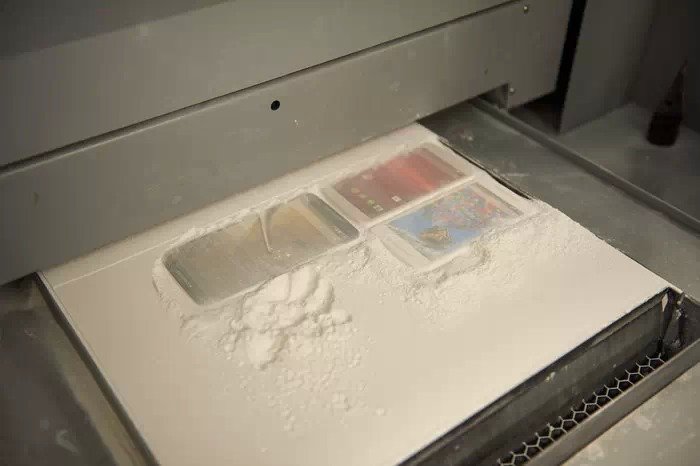 接下來取得是仿真程度高一點(diǎn)的模具室。里面還躺著幾個(gè)模型。“阿笠博士”把手伸到里面,抓了一把白色的粉末,我們才知道原來打印的原材料是石膏。它利用石膏和一個(gè)有顏色的膠打造模具,由于不同顏色的膠會(huì)粘合在一起,肉眼粗看起來還挺像真的。這個(gè)工作間一個(gè)小時(shí)就能做一個(gè)模具出來。,不僅快而且成本也不高,用完了還可以再回收接著用。