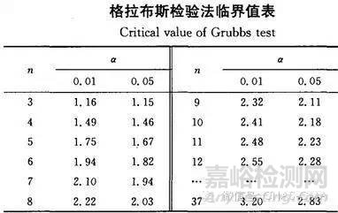 3.假設(shè)若xn為離散值,則T= (xn-x)/s;所得結(jié)果T與格魯布斯檢驗(yàn)值表所得臨界值Ta,n值比較(a為顯著性水平,n為樣本量)。