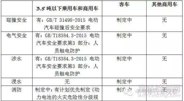 目前出臺GB/T18384-2015標準適用于3。5噸以下的電動乘用車或電動商用車,整車層面針對電動汽車動力系統(tǒng)所提出的安全通則,包括:車載可充電儲能系統(tǒng)、操作安全和故障防護、人員觸電防護3部分,更側重于針對電能和電磁能的安全規(guī)范和故障保護。