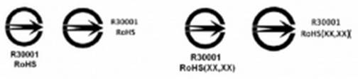 (6)“RoHS”+識(shí)別碼:表示有害物質(zhì)的含量(除豁免情況外)沒(méi)有超出指定限值。