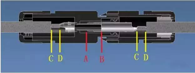 安裝不到位是引起Rco增大的主要因素之一。每個公司的連接器插合后為了能保證通流,A-B段(圖2)的搭接長度是一定的,目的就是為了保證兩個金屬件完全接觸。如果在連接器的組裝過程中出現(xiàn)安裝不到位的情況則金屬件的插合就會出現(xiàn)異常,如圖。