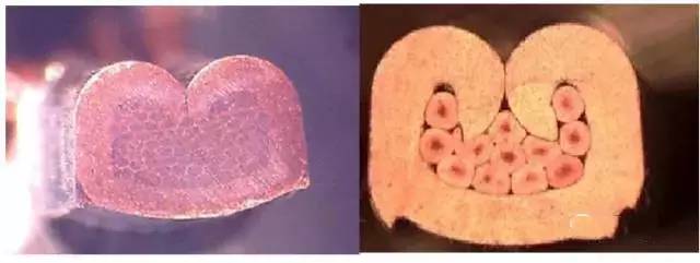 涉及到壓接工藝時我們需要注意剝線環(huán)節(jié),標準中對于在剝線中切斷的銅絲數(shù)是有嚴格規(guī)定。如果切斷的銅絲較多就會影響壓接及通流質(zhì)量,從而造成較高的溫升。而在失效的樣品中我們發(fā)現(xiàn):電纜在壓接前內(nèi)部很多銅絲已被剪斷(見圖)。