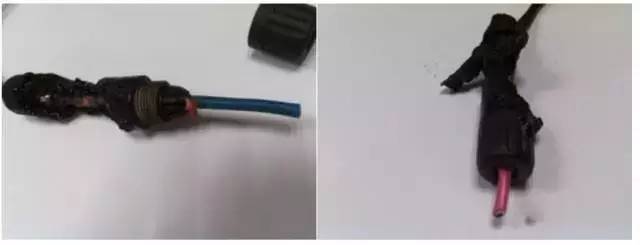 對所有的樣品進行初步外觀分析后發(fā)現(xiàn),連接器燒毀的部位主要存在于連接器的中間部分及兩端壓接部分(見下圖)。