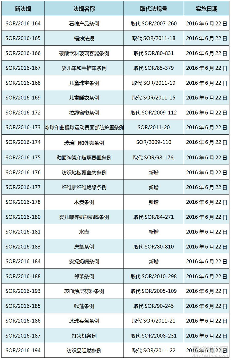 2016年7月13日,加拿大發(fā)布消費(fèi)品安全法案(CCPSA)下法規(guī)的修訂法規(guī),具體如下: