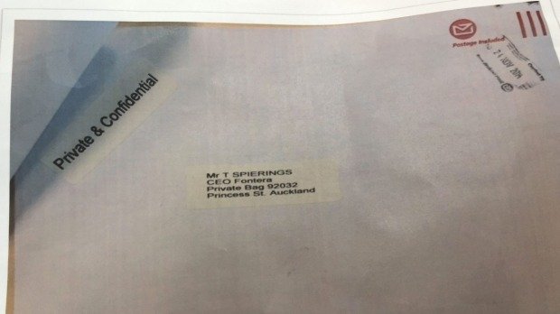 信件內容稱,如果政府在三月底前不停用1080(用作滅鼠劑),那么新西蘭配方奶粉以及其他產(chǎn)品將會攜帶滅鼠劑。附帶的牛奶包裝物被檢出滅鼠劑。