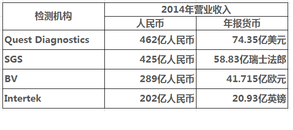 作為第三方檢測服務平臺,嘉峪檢測網(wǎng)AnyTesting.com致力于為檢測需求方選擇最合適的第三方檢測實驗室。對全球知名檢測機構(gòu)2014年年報進行了跟蹤解讀,以下為已發(fā)布年報的檢測機構(gòu)及其2014年營業(yè)收入數(shù)據(jù)。
