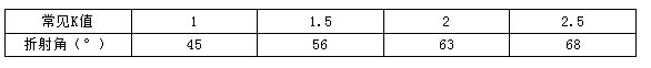 常見(jiàn)K值與折射角的換算: