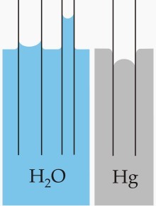 如果液體不能潤(rùn)濕毛細(xì)管,則液體在細(xì)管降低。例如水銀(Hg)在玻璃毛細(xì)管內(nèi),液面是下降的。