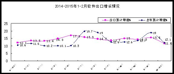 1-2月,軟件業(yè)實現出口80.7億美元,同比增長11.6%,增速低于去年同期0.5個百分點,低于全行業(yè)增速4.2個百分點。其中外包服務出口增長8.2%,增速低于去年同期10個百分點; 嵌入式系統(tǒng)軟件出口增長12.5%,增速比去年同期回升2.2個百分點。