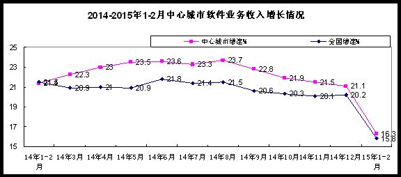 1-2月,全國15個副省級中心城市實現軟件業(yè)務收入3134億元,同比增長16.3%,增速低于去年同期5.1個百分點。除西安和濟南增速有所提升,其余13個中心城市的軟件業(yè)務收入增速呈持平或不同程度下調態(tài)勢。中心城市的軟件業(yè)務收入中,軟件產品、信息技術服務和嵌入式系統(tǒng)軟件產品收入分別低于去年同期7.2、4.4和3.2個百分點?!?/span>