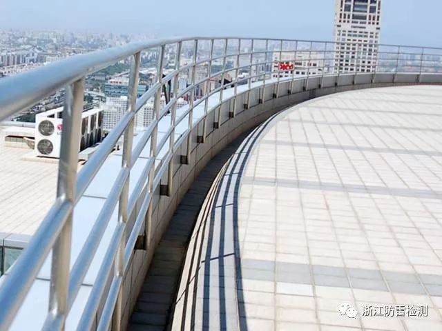 3、不銹鋼管金屬欄桿一般管壁較薄,截面積達(dá)不到避雷帶設(shè)計(jì)的要求,尤其是在連接處,更是薄弱環(huán)節(jié),應(yīng)在其連接處做加強(qiáng)處理,確保在遭到雷擊時安全瀉流。
