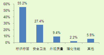 產(chǎn)品不合格的情況主要包括標(biāo)識(shí)標(biāo)簽、安全衛(wèi)生項(xiàng)目、外觀質(zhì)量、理化性能等不合格。安全衛(wèi)生不合格項(xiàng)目主要是蒸發(fā)殘?jiān)瑯?biāo)、脫色、丙烯腈單體、高錳酸鉀消耗量超標(biāo)、熒光檢查不合格、重金屬溶出量超標(biāo),檢驗(yàn)檢疫機(jī)構(gòu)對(duì)此類(lèi)不合格產(chǎn)品均做出了銷(xiāo)毀或退運(yùn)處理。
