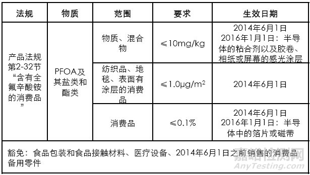 挪威環(huán)保局近日發(fā)布公告,宣布消費(fèi)品中PFOA及其鹽類和酯類的國(guó)家禁令于2014年6月1日正式實(shí)施,含有PFOA及其鹽或酯類的消費(fèi)品(包括固體和液體的)和紡織品將被禁止生產(chǎn)、進(jìn)口、出口和銷售。該禁令于2013年6月28日公布,被列入《挪威產(chǎn)品法規(guī)》第2-32節(jié)。