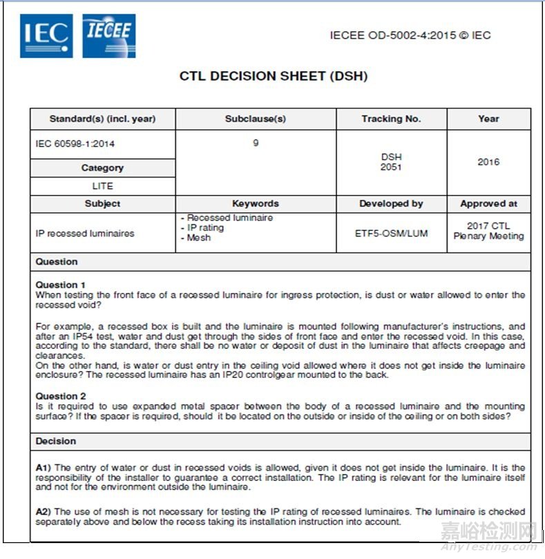 對于嵌入式燈具的防塵防水測試,您是否了解相關的特殊要求?譬如: