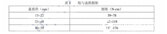 測(cè)試過程:取待測(cè)試樣數(shù)個(gè),放置在NJY-20扭矩儀上,在下表表1所標(biāo)示的扭矩下,瓶口與瓶蓋應(yīng)配合適宜,不得滑牙。