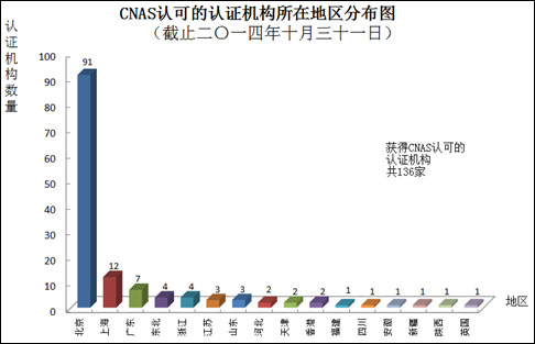 截至2014年10月31日,CNAS認可各類認證機構(gòu)、實驗室及檢查機構(gòu)三大門類共計十四個領(lǐng)域的6813家機構(gòu)。