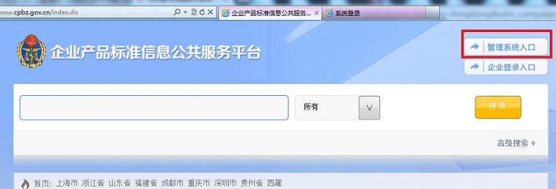 為推進(jìn)企業(yè)產(chǎn)品標(biāo)準(zhǔn)自我聲明公開和監(jiān)督制度建立,進(jìn)一步完善深化企業(yè)產(chǎn)品標(biāo)準(zhǔn)自我聲明公開制度試點(diǎn)工作,經(jīng)過一年多的研發(fā)、調(diào)試,企業(yè)產(chǎn)品標(biāo)準(zhǔn)信息公共服務(wù)平臺管理系統(tǒng)已正式上線,管理平臺用戶全面覆蓋縣級以上標(biāo)準(zhǔn)化行政主管部門。各級標(biāo)準(zhǔn)化行政主管部門通過登錄企業(yè)產(chǎn)品標(biāo)準(zhǔn)信息公共服務(wù)平臺管理系統(tǒng),可實(shí)現(xiàn)對本地區(qū)企業(yè)產(chǎn)品標(biāo)準(zhǔn)公開信息的自主管理。同時(shí),為今后開展相關(guān)監(jiān)管工作提供了有力保障。 具體登錄方式: 1.打開瀏覽器,輸入:http://www.cpbz.gov.cn 2.點(diǎn)擊“管理系統(tǒng)入口”: