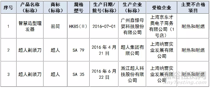 本次抽查發(fā)現(xiàn)3批次產(chǎn)品不合格,涉及的不合格項(xiàng)目為:耐熱和耐燃。
