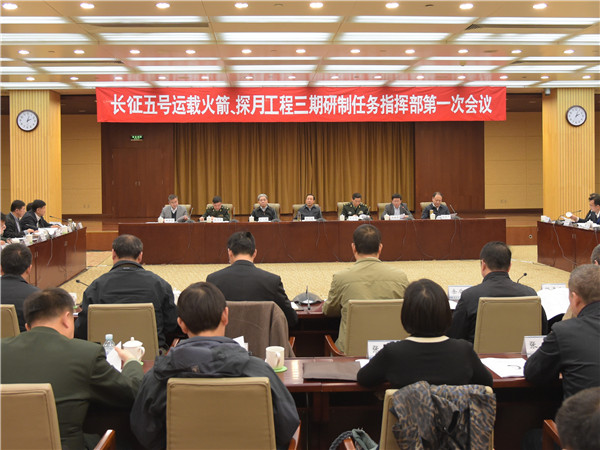 2015年4月13日,長(zhǎng)征五號(hào)運(yùn)載火箭工程、探月工程三期研制任務(wù)指揮部組織召開(kāi)指揮部第一次會(huì)議。工業(yè)和信息化部副部長(zhǎng)、國(guó)家國(guó)防科技工業(yè)局局長(zhǎng)、探月工程重大專項(xiàng)領(lǐng)導(dǎo)小組組長(zhǎng)、探月工程總指揮許達(dá)哲出席會(huì)議并作重要講話。