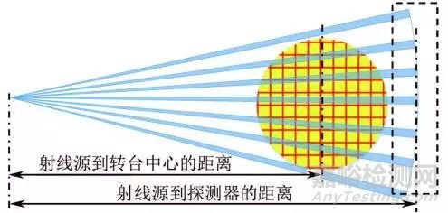 其即為試樣外形最大尺寸的1.5倍。檢測(cè)時(shí)應(yīng)防止試樣未擺放到轉(zhuǎn)臺(tái)中心,造成CT圖像沒(méi)有完全包含產(chǎn)品。