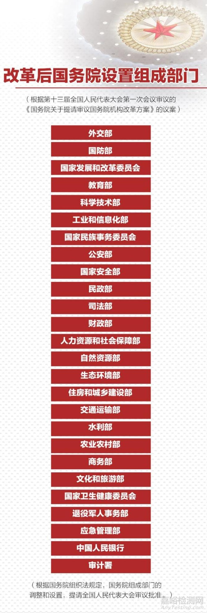 改革后,除國務(wù)院辦公廳外,國務(wù)院設(shè)置組成部門26個(gè)。