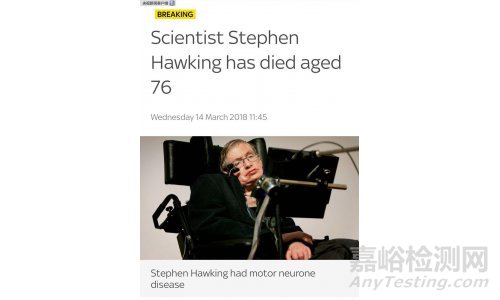 據(jù)英國天空電視臺14日快訊:英國著名物理學(xué)家斯蒂芬·霍金去世,享年76歲。