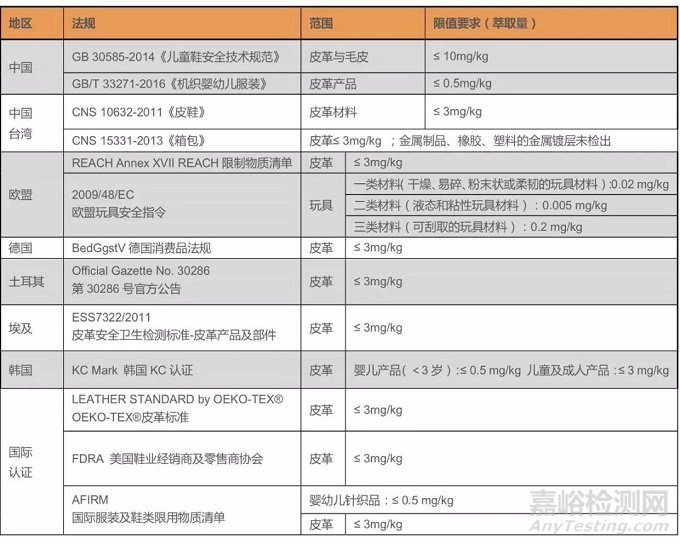 六價鉻的毒性大且應(yīng)用廣泛,還有可能對環(huán)境帶來嚴(yán)重的污染,因此全球范圍內(nèi)各國紛紛出臺法規(guī)及標(biāo)準(zhǔn)限值六價鉻,不僅如此,眾多國際認(rèn)證組織也針對六價鉻提出了更高的要求,以滿足企業(yè)日益強(qiáng)調(diào)的環(huán)保理念。