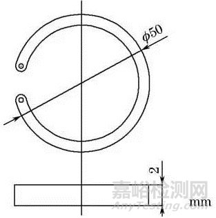 以某產(chǎn)品擋圈零件為例,薄環(huán)開口擋圈零件的結(jié)構(gòu)如下圖所示,其為一個(gè)中間有較大空氣間隙的薄形環(huán)狀零件。該擋圈零件的作用是在軸上固定其他組合零件,防止其他零件在使用中產(chǎn)生滑移。