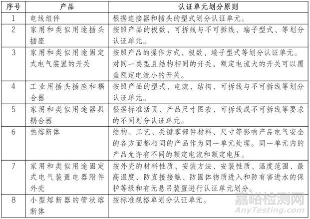 答:可以做一個系列,帶與不帶USB不能為一單元;帶與不帶電子開關(guān)不能為一單元,可拆線產(chǎn)品與不可拆線產(chǎn)品不可在同一認證單元。原則上,結(jié)構(gòu)基本相同、功能相同、所用主體材料(見附件 5)類別相同(例如金屬、熱塑性、熱固性等)的同一類電器附件產(chǎn)品可以作為一個認證單元。詳情單元劃分見以下描述: