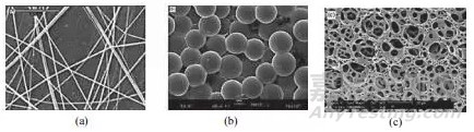 PANACRYL®是另一種商業(yè)化的PLGA縫合線。另外PLGA也應(yīng)用于其它醫(yī)療方面,如網(wǎng)絲(VicrylMesh®)、植皮材料和硬腦膜替代品等,組織工程植皮便是使用了VicrylMesh®作為支架材料。PLGA中的酯鍵因水解作用斷裂,其降解速率受很多因素影響,如:LA與GA質(zhì)量比、分子量、材料的形狀和結(jié)構(gòu)等。PLGA具有易于加工和降解速率可控的特點(diǎn),被美國FDA批準(zhǔn)可應(yīng)用于人體,在可控藥物/蛋白運(yùn)輸系統(tǒng)、組織工程支架等領(lǐng)域得到廣泛研究。PLGA具有促進(jìn)細(xì)胞吸附和增殖作用,該性質(zhì)使它具有潛在的組織工程應(yīng)用,很多研究已經(jīng)制備了微米–納米級PLGA三維支架。圖1列出了不同方法得到的3種PLGA結(jié)構(gòu)。